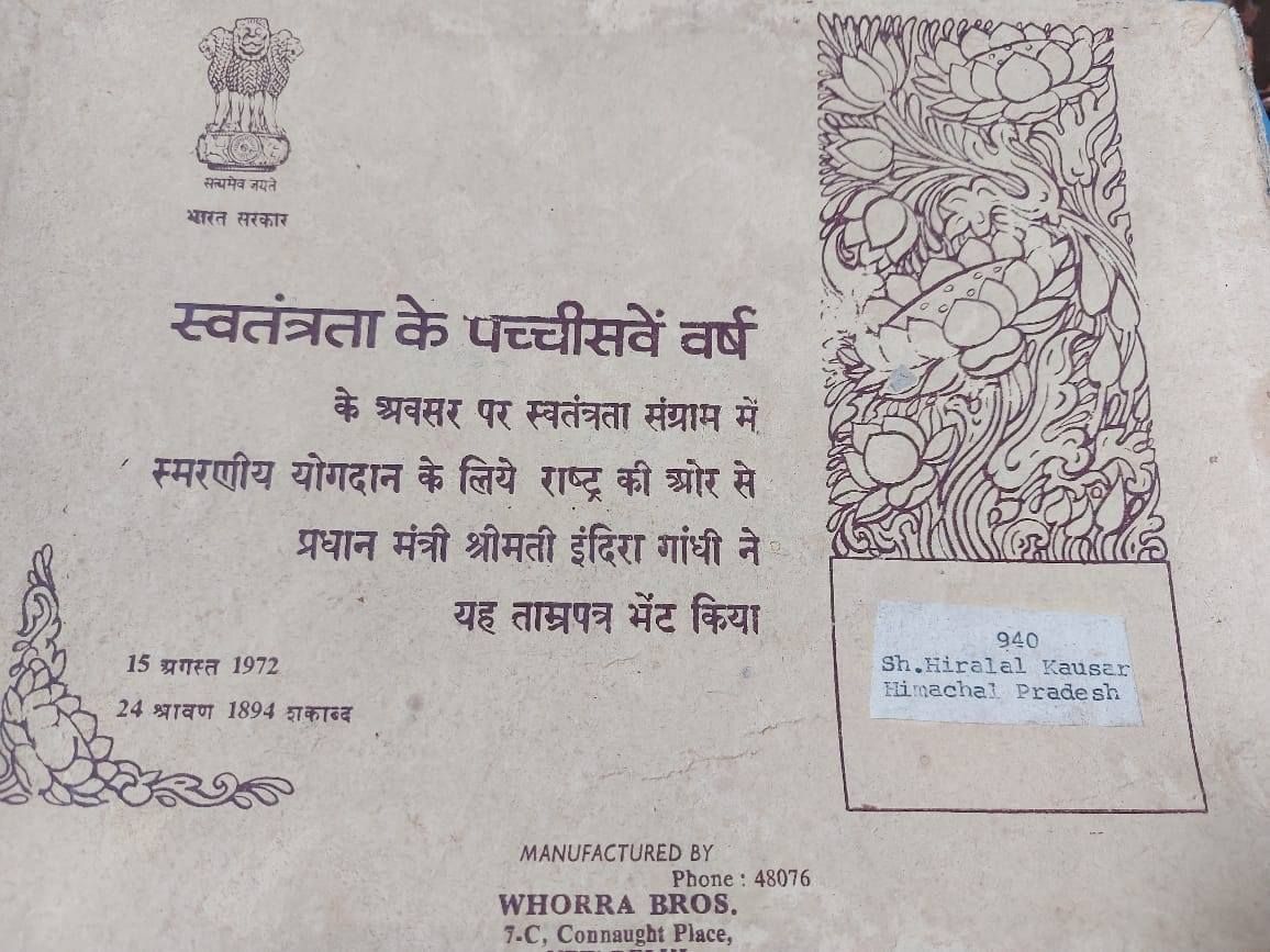 He participated in the Farmer Movement in 1932. Actively worked in Solan, Lahore, and Multan areas. Founded Praja Mandal in 1934. He was imprisoned in Lahore in 1938 during the Civil Disobedience Movement. He served as President and General Secretary of Praja Mandal. He was dismissed from service and later honoured with a Tamrapatra in 1972.
